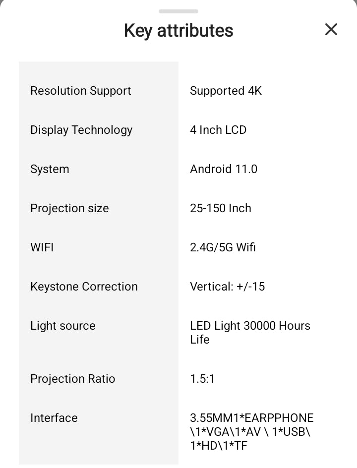 YDH-M7 Smart 4K Laser Projector 1050 Lumens Android 11 Infrared remote Control